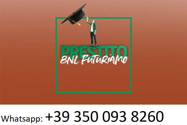 Per tutte le persone che hanno problemi di un prestito, sono un privato che presta di soldi da 3.OOO EURO - 9.OOO.OOO EURO. Acquista una macchina nuova, costruisci una casa e, infine, per le tue esigenze personali, mettiamo a vostra disposizione opportunit� molto grande per realizzare il vostro bisogno e compiere i vostri progetti, contattaci per maggiori dettagli. E-mail: camillawenberg@gmail.com